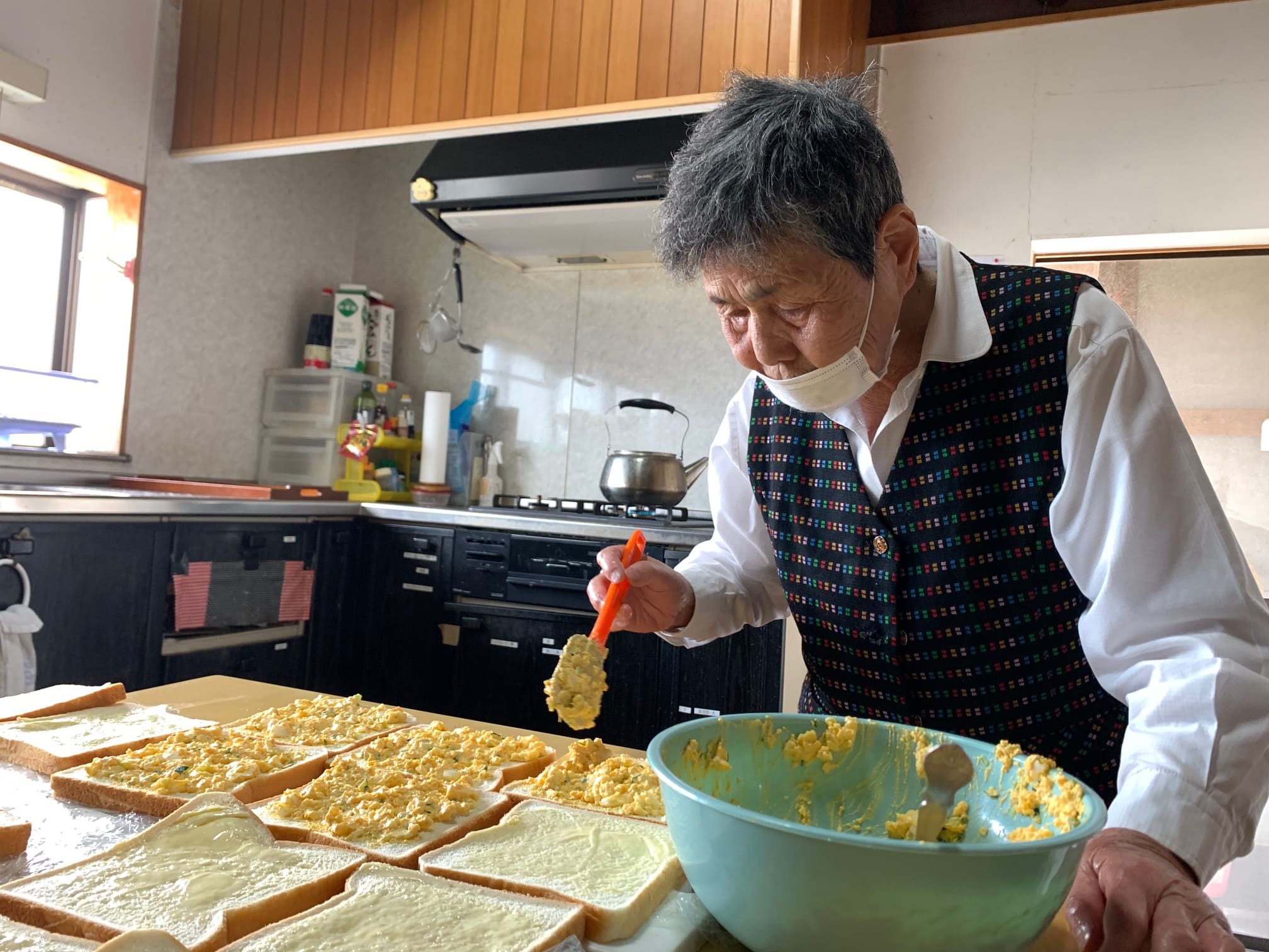 にわとりを飼っているスタッフが卵を🥚 女性メンバーがサンドウィッチを作ります🍳